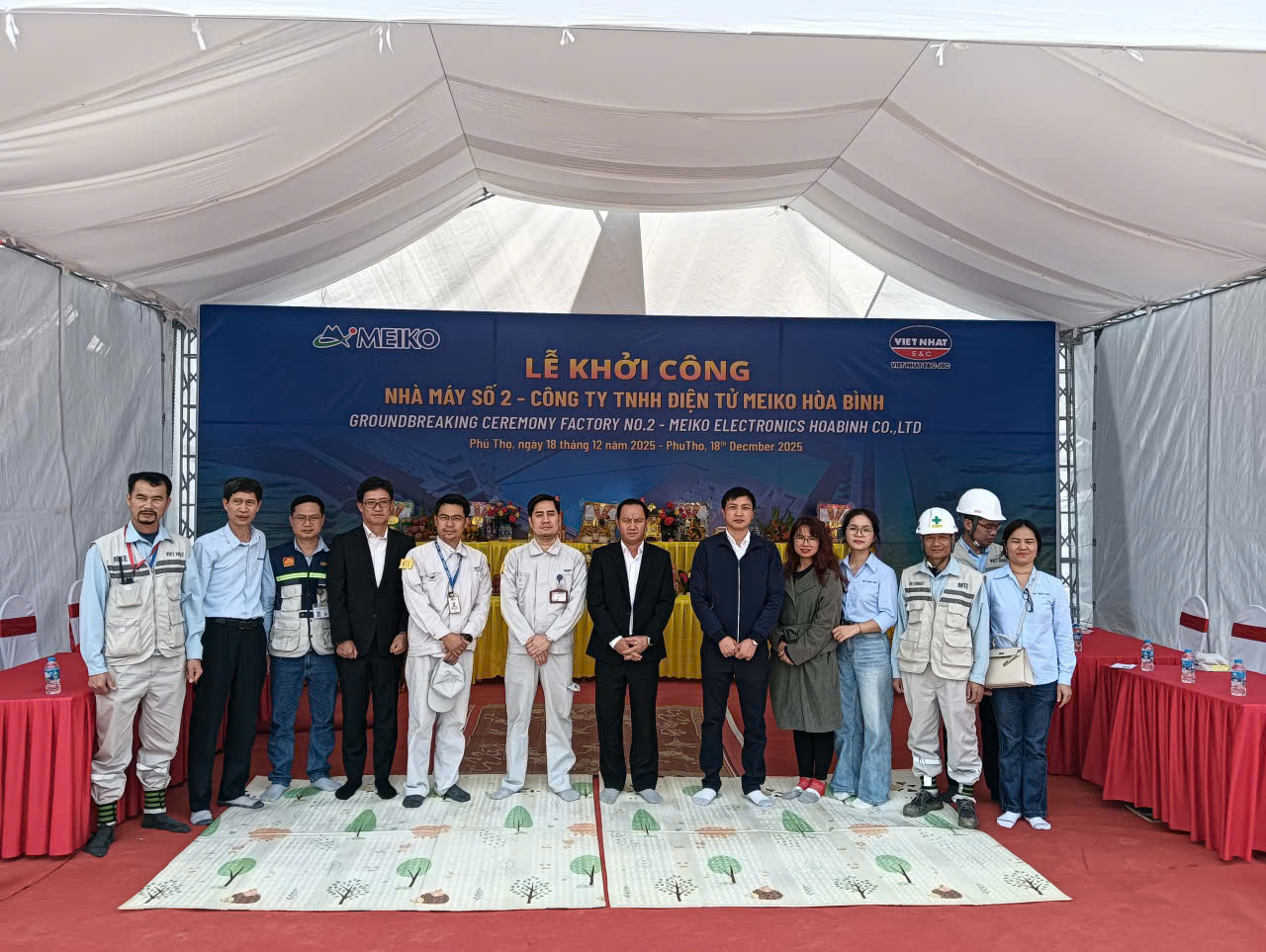 Đại diện Chủ đầu tư, các đơn vị tham gia dự án chụp ảnh lưu niệm tại Lễ khởi công Nhà máy Meiko Hòa Bình Ngày 18/12/2025, tại tỉnh Phú Thọ (tỉnh Hòa Bình cũ), Lễ khởi công Nhà máy Meiko Hòa Bình (Nhà máy số 2 – Công ty TNHH Điện tử Meiko Hòa […]